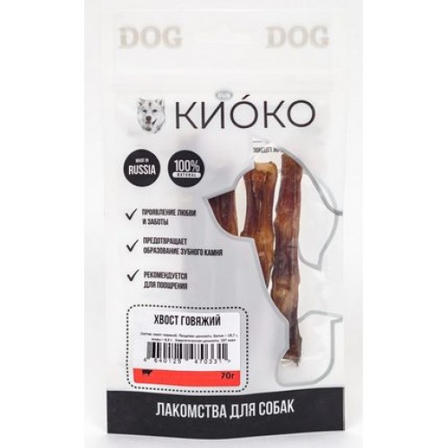 КИОКО лакомства для собак из говядины сушеные. Хвост говяжий 70.