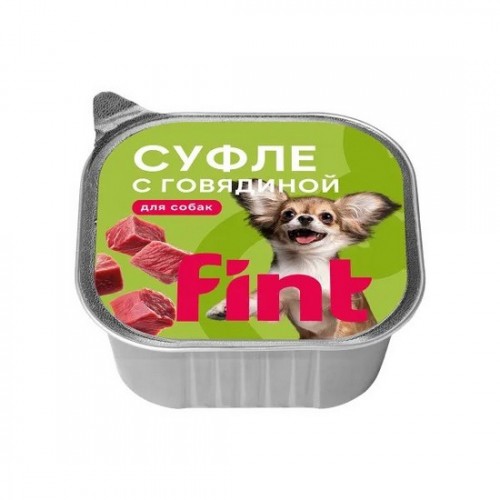 Суфле из говядины FINT для взрослых собак мелких и средних пород. Легко усваивается, благодаря нежной текстуре подходит для кормления питомцев с чувствительным пищеварением.