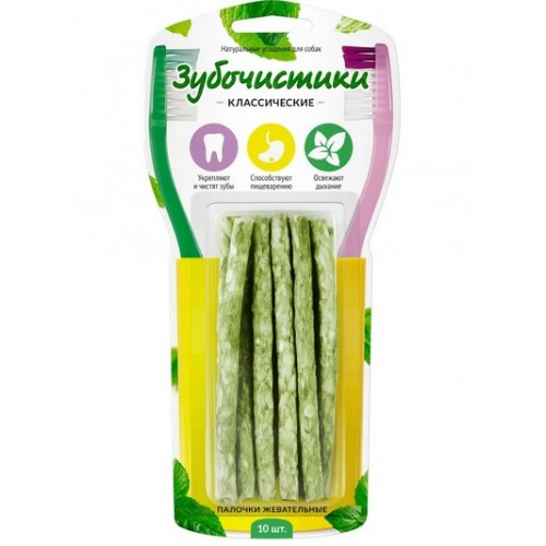 Зубочистики» классические - это прекрасная возможность совместить приятное с полезным. Каждое лакомство содержит кальций и хлорофилл, которые способствуют укреплению зубов и улучшению пищеварения. Натуральные ингредиенты и великолепный вкус гарантируют удовольствие вашему питомцу.